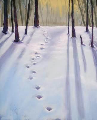 Footprints in snowy woods